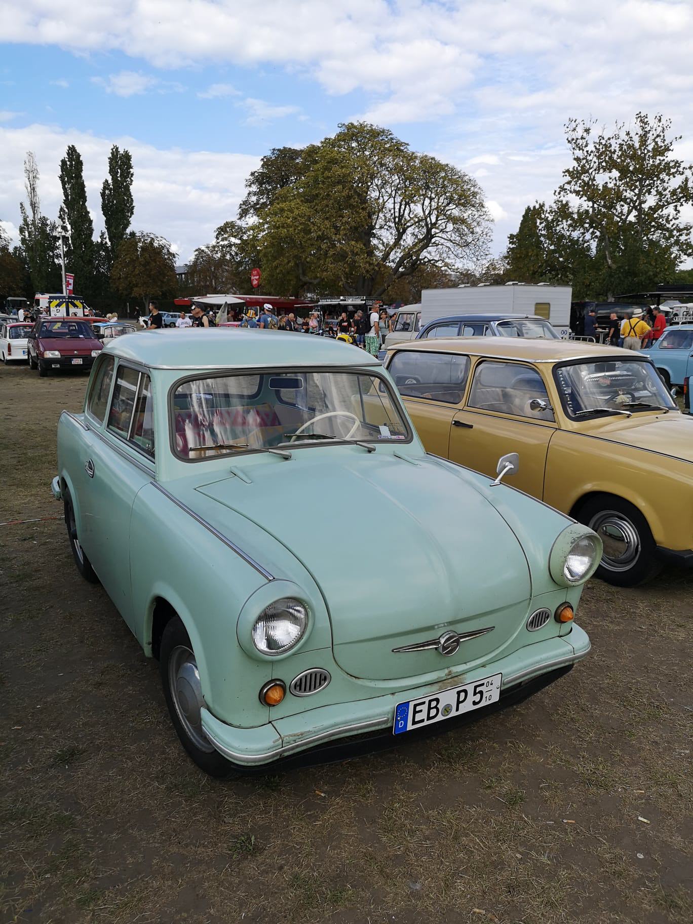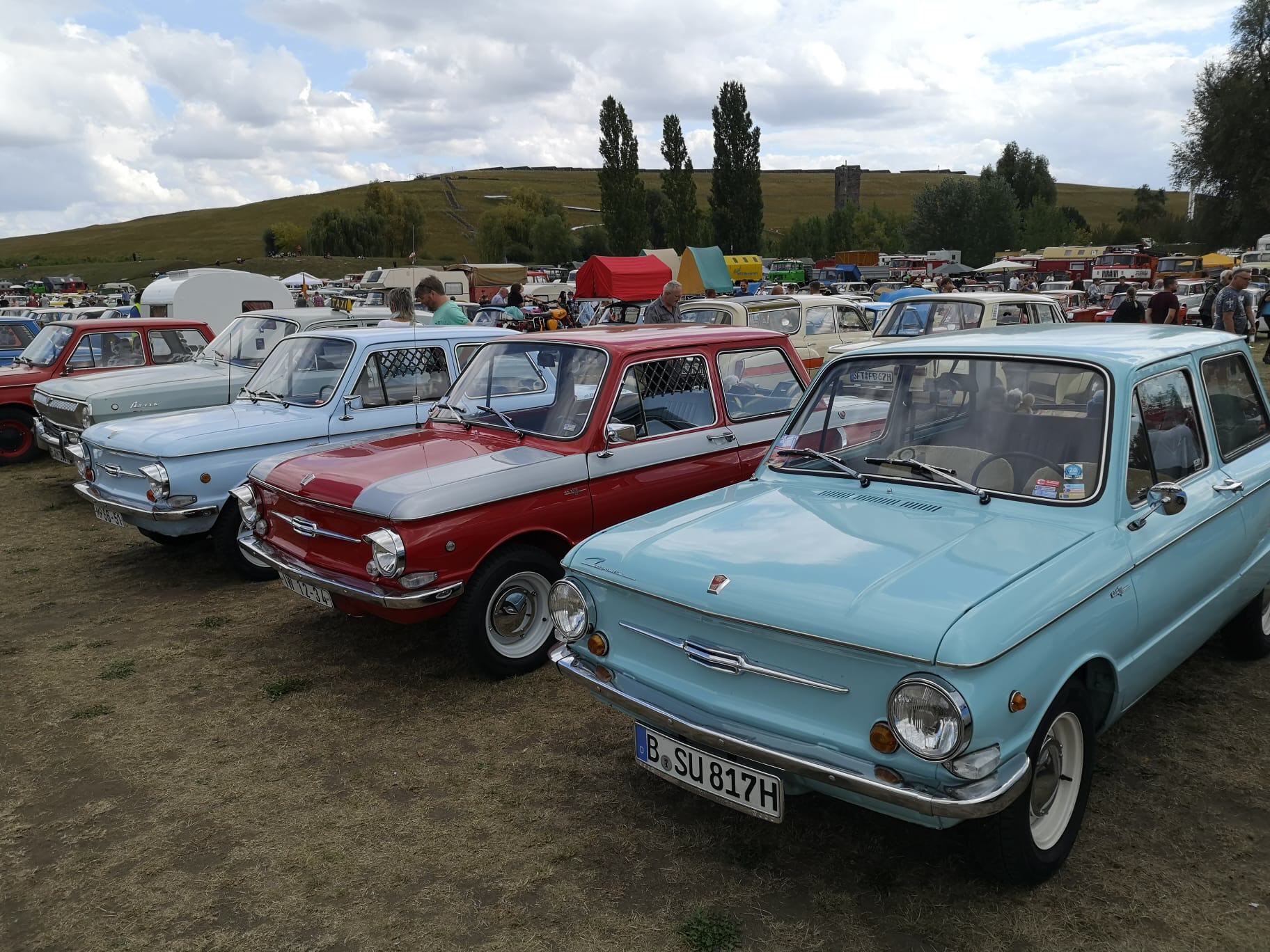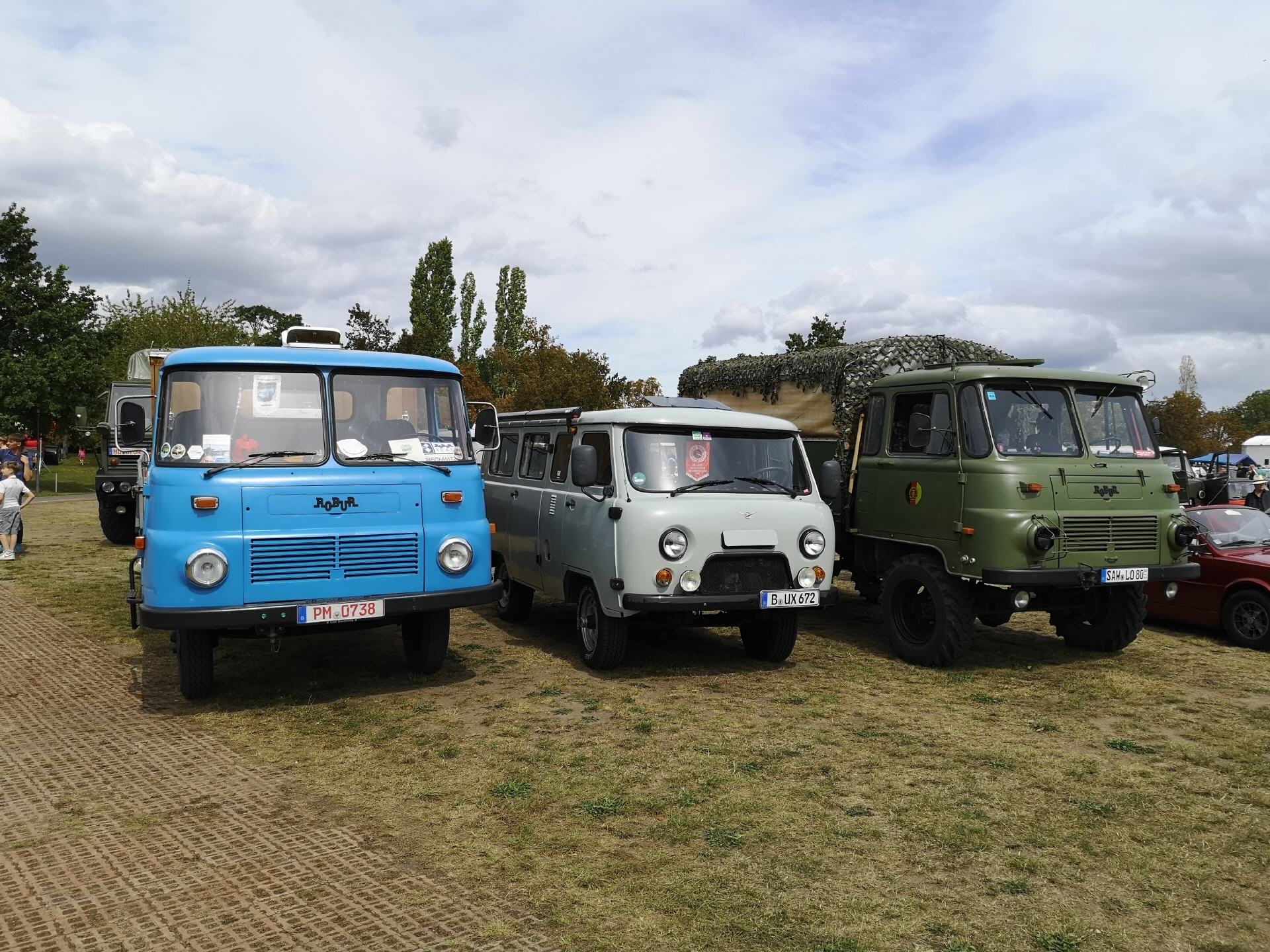 Der Samstag war der große Höhepunkt: der Haupttag, an dem auch viele Tagesbesucher mit ihren historischen Fahrzeugen anreisten. Trabant, Wartburg, Skoda, Lada, russische Fabrikate – alles, was das Ost-Fahrzeugherz begehrt, war vertreten. Dazu strahlender Sonnenschein, perfekte Stimmung und jede Menge Benzingespräche.