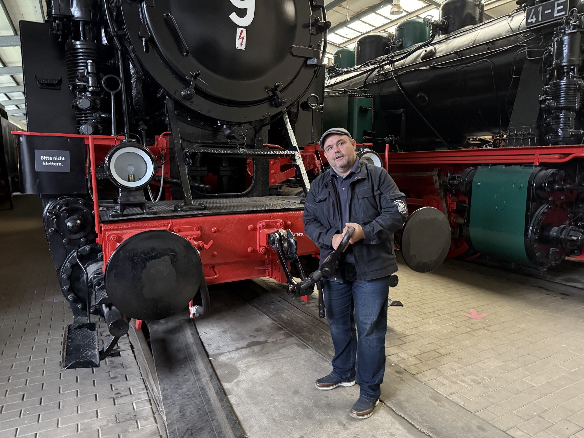 Im Museum wurden wir herzlich empfangen. Ein Gästeführer stand bereit, um uns mit spannenden Infos rund um die Eisenbahn-Geschichte zu versorgen – doch mit unserem Mike im Gepäck blieb kaum eine Frage offen. Sein Wissen rund um alte Technik und deren Geschichte war wieder einmal Gold wert.