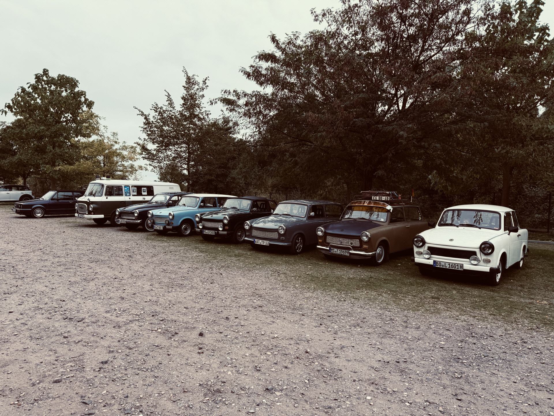 Zum Tag der Deutschen Einheit am 3. Oktober 2025 machten wir uns mit einer bunt gemischten Fahrzeugflotte auf den Weg, um diesen besonderen Feiertag auf ganz eigene Weise zu feiern. Mit fünf Trabis, einem Barkas und – zur internationalen Verständigung – auch einem Westauto (ein klassischer Audi 80) ging es los von Bochum Richtung Dortmund.